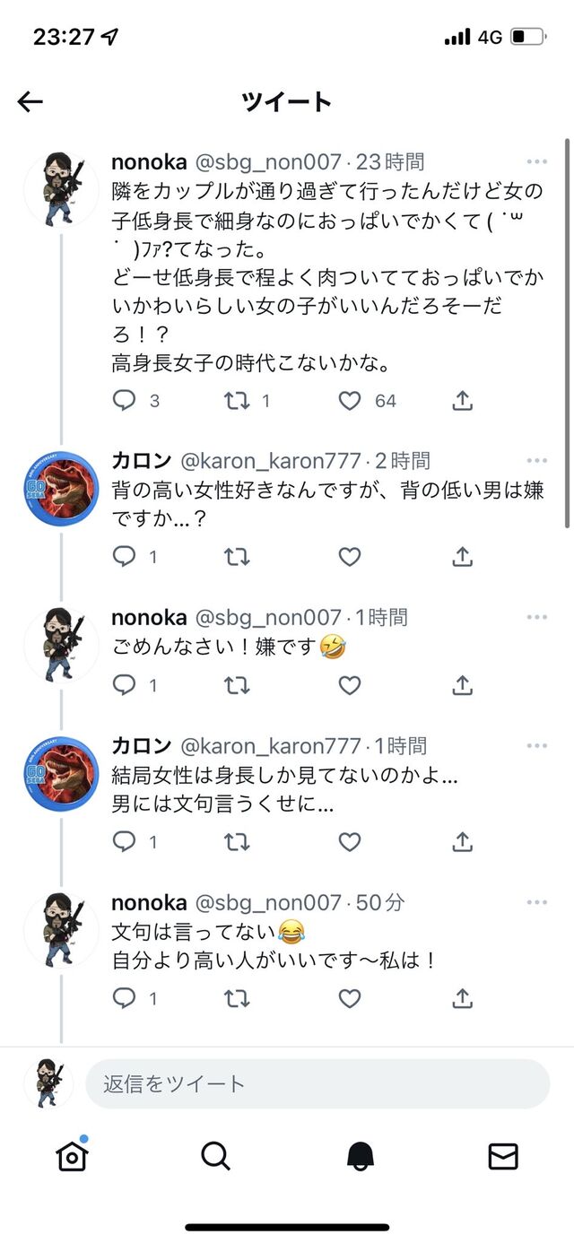 低身長の男の人好きです!とか言って貰えると思ったんやろなぁ😂