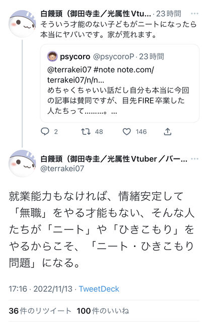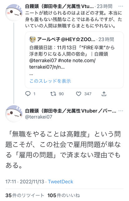 ニートはニートでも自分のやりたい事に精を出してるタイプの奴はまた違うんやろな