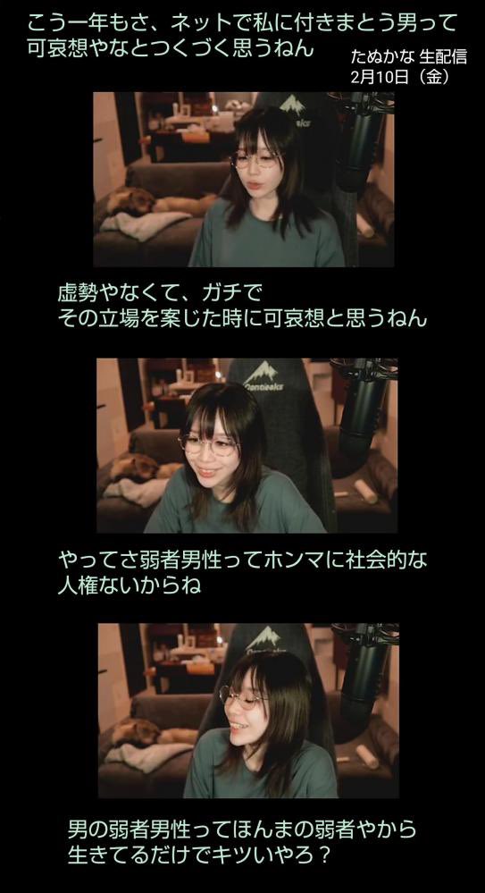 弱者男性という存在がいることを認めるたぬかなは当然弱者男性からは味方扱いや