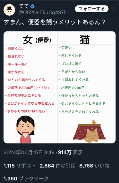 女飼うぐらいなら猫のがええわ