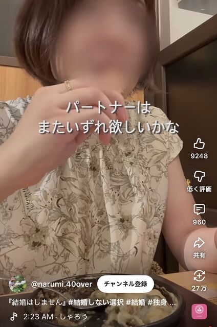 おひとりさまって検索すると香ばしい負け組おばさんの動画出てくるね😂