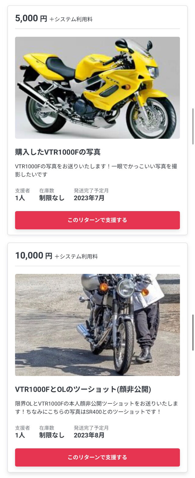 5月末のお誕生日にVTR1000F(黄色)を納車したくてこのプロジェクトを立ち上げました!